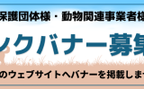 2026.02.04 リンクバナーの掲載を希望される動物保護団体様、動物関連事業者様を募集いたします。バナーはトップページに掲載します。実際の掲載サイズとなる募集PR画像をこのページ下部に表示しています。詳細は下記ページをご覧ください。