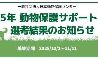 お知らせ 2025年動物保護サポート助成選考結果のお知らせ